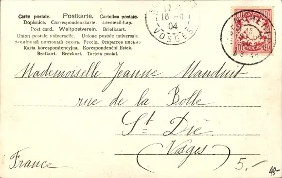 Zustand, siehe Scan, gelaufen, 1904 - ca 14 cm X 9 cm