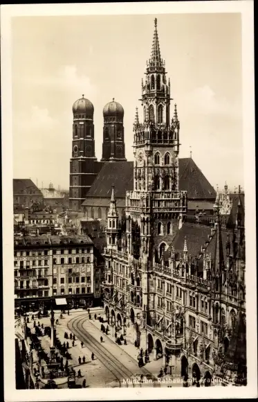Ak München, Rathaus mit Frauenkirche