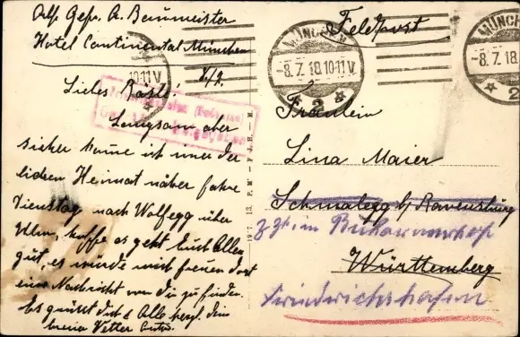 Zustand, siehe Scan, gelaufen, 1918 - ca 14 cm X 9 cm