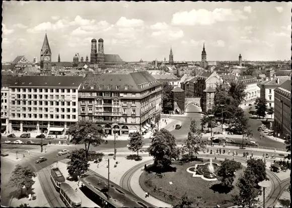 Ak München, Sendlinger Tor Platz und Blick auf die Innenstadt, Straßenbahn