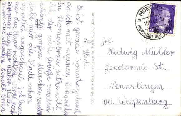 Zustand, siehe Scan, gelaufen, 1942 - ca 14 cm X 9 cm