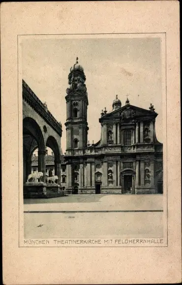 Ak München, Theatinerkirche mit Feldherrnhalle