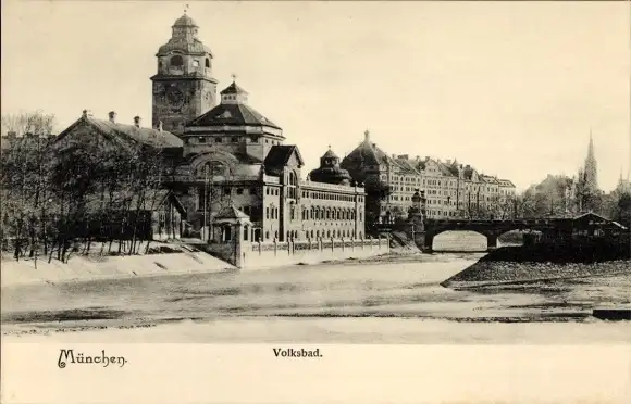 Ansichtskarte, Postkarte, Badeanstalt, Schwimmbad, Freibad, Strandbad, Volksbad