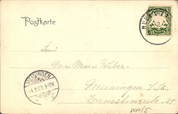 Zustand siehe Scan, gelaufen, 1903 - ca 14 cm X 9 cm