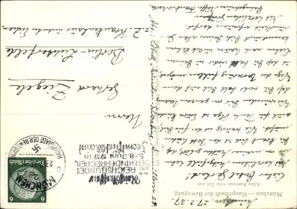 Zustand, siehe Scan, gelaufen, 1937 - ca 10 cm X 14 cm