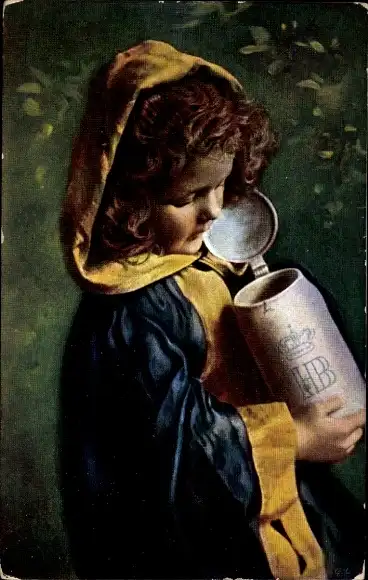 Ak Münchner Kindl mit Bierkrug, Gewand