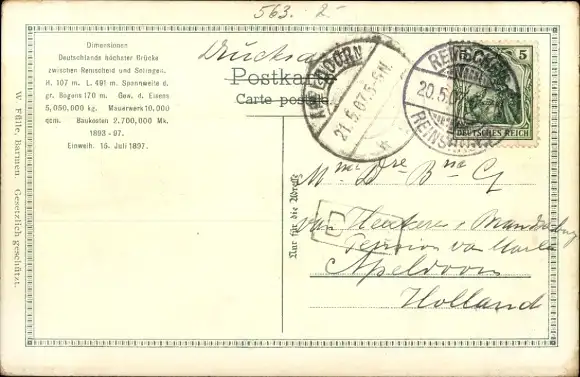 Zustand, siehe Scan, gelaufen, 1907 - ca 14 cm X 9 cm