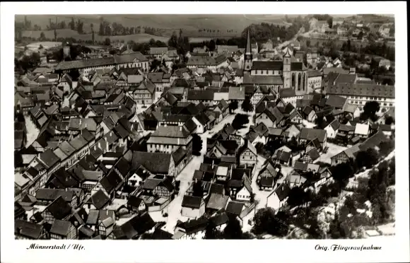 Ak Münnerstadt in Unterfranken Bayern, Fliegeraufnahme der Stadt