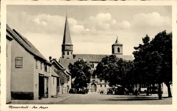 Ak Münnerstadt in Unterfranken Bayern, Partie am Anger, Kirche