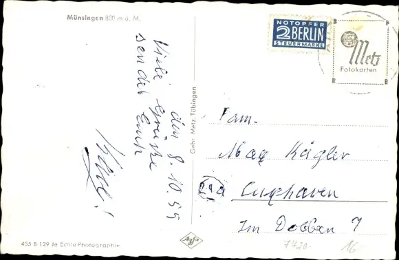 Zustand, siehe Scan, gelaufen, 1955 - ca 14 cm X 9 cm