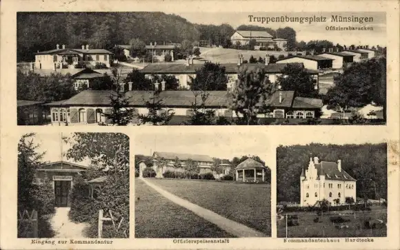 Ak Münsingen in Württemberg, Truppenübungsplatz, Eingang Kommandatur, Offizierspeiseanstalt