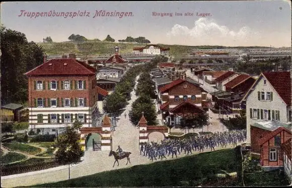 Ak Münsingen in Württemberg, Truppenübungsplatz, Truppenübungsplatz Münsingen. Eingang ins alt...