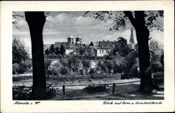 Ak Münster in Westfalen, Blick auf Dom und Lambertikirche