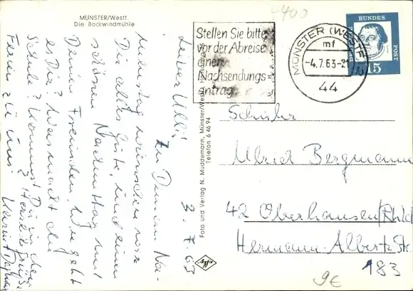 Zustand, siehe Scan, gelaufen, 1963 - ca 10 cm X 15 cm