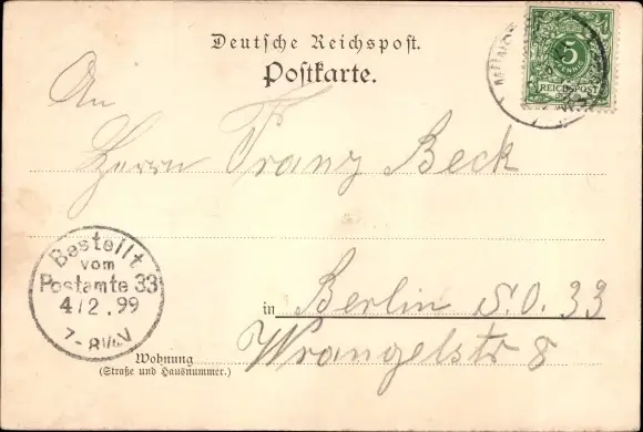 Zustand, siehe Scan, gelaufen, 1899 - ca 14 cm X 10 cm