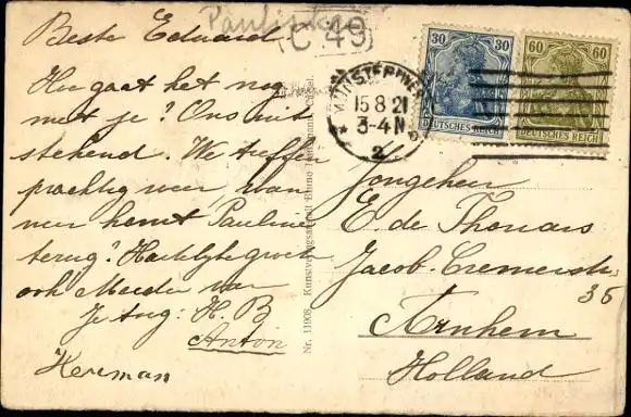 Zustand, siehe Scan, gelaufen, 1921 - ca 5 cm X 3 cm