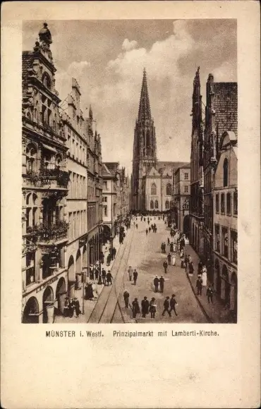 Ak Münster in Westfalen, Prinzipalmarkt mit Lamberti-Kirche