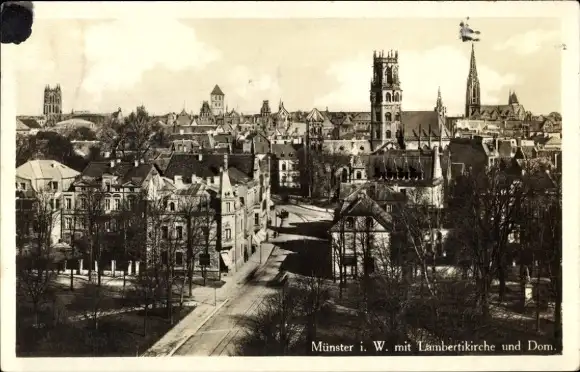 Ak Münster in Westfalen, Teilansicht, Lambertikirche, Dom