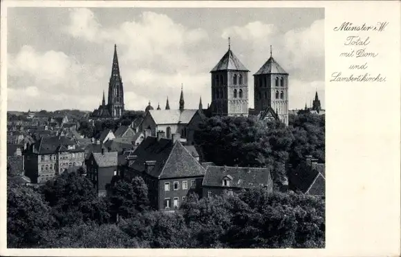 Ak Münster in Westfalen, Totalansicht, Dom, Lambertikirche