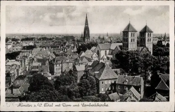 Ak Münster in Westfalen, Totalansicht, Dom, Lambertikirche