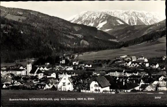 Ak Mürzzuschlag Steiermark, Ort gegen Schneealpe gesehen