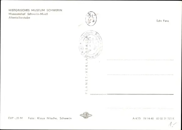 Ak Mueß Schwerin in Mecklenburg, Historisches Museum, Museumshof, Altenteilerstube