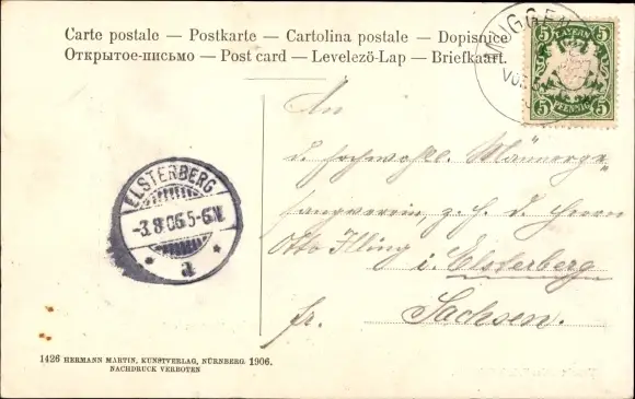 Zustand, siehe Scan, gelaufen, 1906 - ca 14 cm X 9 cm