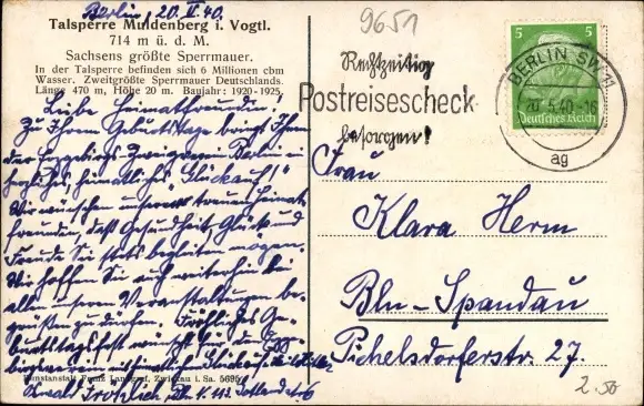 Ansichtskarte, Postkarte, Talsperre, Stausee, Staudamm, Staumauer