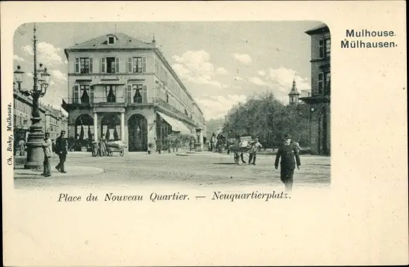 Ak Mulhouse Mülhausen Elsass Haut Rhin, Neuquartierplatz