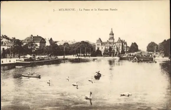 Ak Mulhouse Mülhausen Elsass Haut Rhin, Post, Neues Bassin
