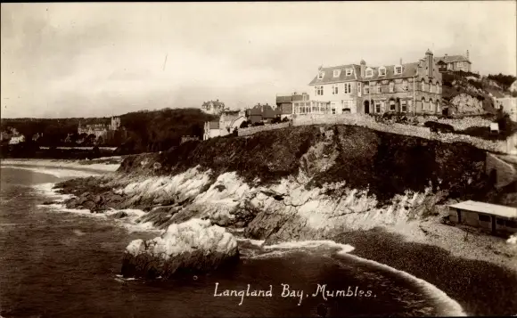 Ak Mumbles Wales, Langland Bay, Küste, Uferpromenade