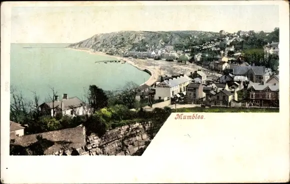 Ak Mumbles Wales, Panorama vom Ort