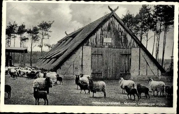 Ak Munster an der Örtze Lüneburger Heide, Heidschnuckenstall