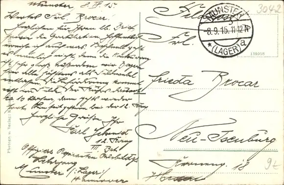 Zustand, siehe Scan, gelaufen, 1915 - ca 14 cm X 9 cm