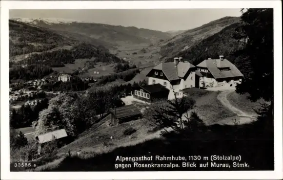 Ak Murau Steiermark, Alpengasthof Rahmhube gegen Rosenkranzalpe