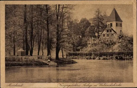 Ak Murrhardt in Württemberg, Kriegergedächtnis Anlage mit Walderichskirche