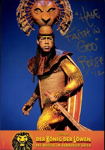 Ak Musicaldarsteller Boise Holmes, Portrait, König der Löwen, Autogramm