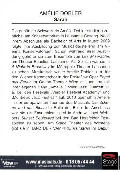 Ak Musicaldarstellerin Amelie Dobler, Portrait, Tanz der Vampire, Autogramm