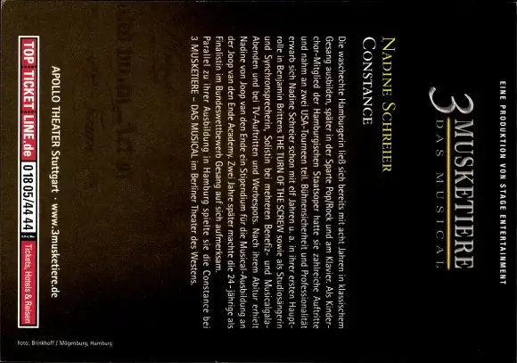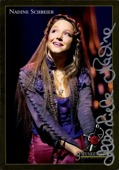 Ak Musicaldarstellerin Nadine Schreier, Portrait, 3 Musketiere, Autogramm
