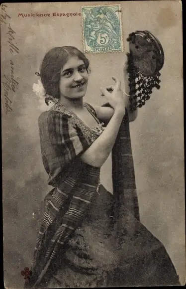 Ak Musicienne Espagnole, Frau in Spanischer Tracht, Tamburin