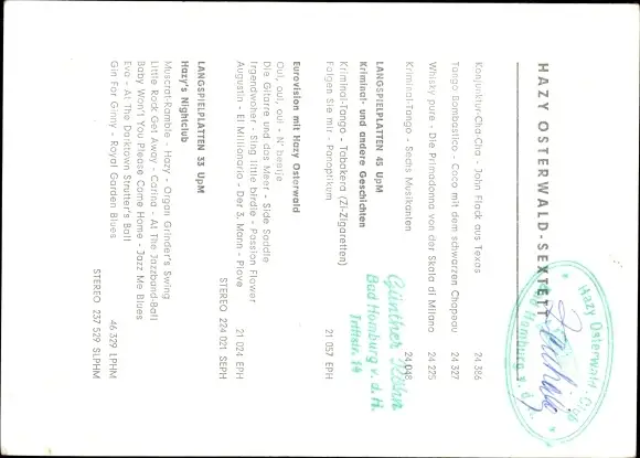 Ak Musikband Hazy Osterwald Sextett, Konjunktur Cha Cha, Tango Bombastico