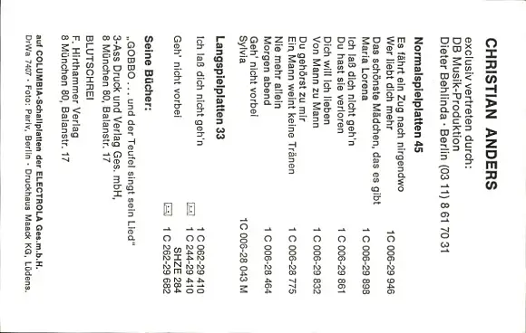 Ak Musiker Christian Anders, Zigarette, Autogramm