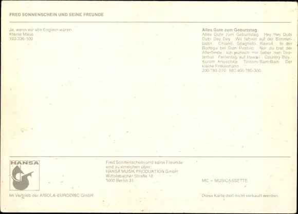 Ak Musiker Frank Zander, Fred Sonnenschein und seine Freunde, Autogramm