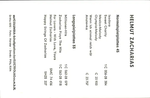 Ak Musiker Helmut Zacharias, EMI Columbia Records, Violinist