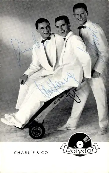 Ak Musiker Trio Charlie & Co., Polydor Schallplatten, Portrait, Autogramme