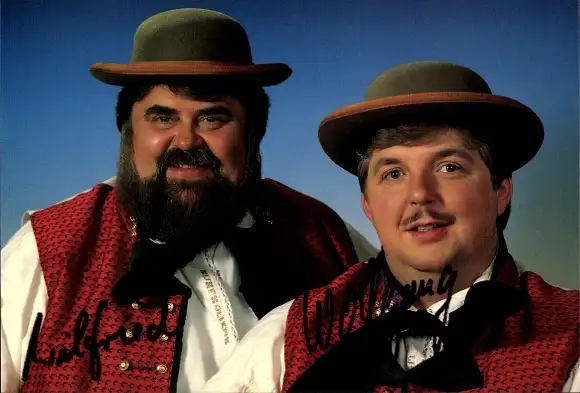 Ak Musiker Wildecker Herzbuben, Portrait in Tracht, Autogramm
