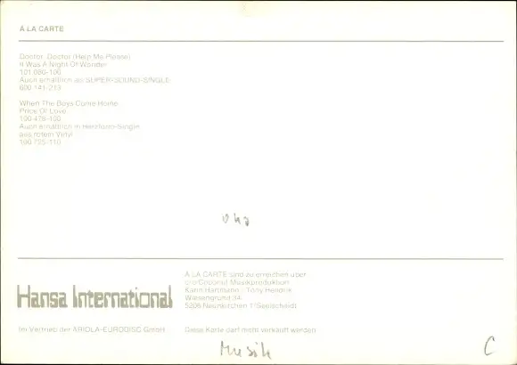 Ak Musikgruppe A La Carte, Portrait in Seemannsuniform