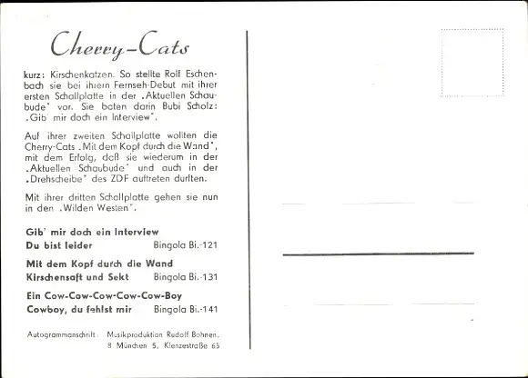 Ak Musikgruppe Cherry-Cats, Portrait, Autogramm