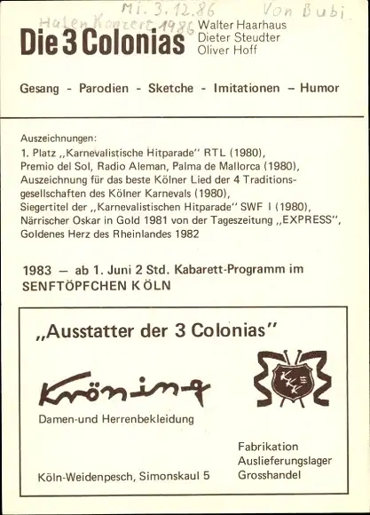 Ak Musikgruppe Die 3 Colonias, Portrait, Autogramme