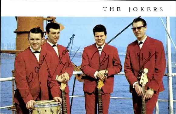 Ak Musikgruppe The Jokers, Gruppenfoto, Gitarren, Autogramme